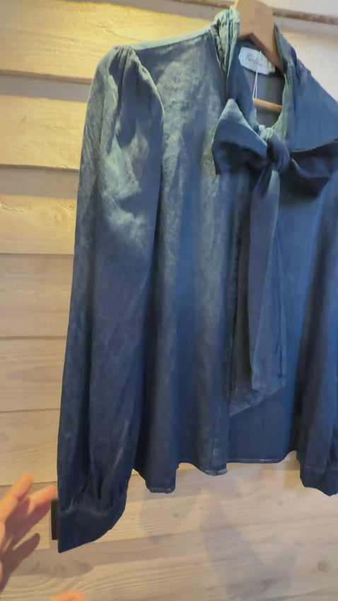 Jeanshemd met vaste strik.