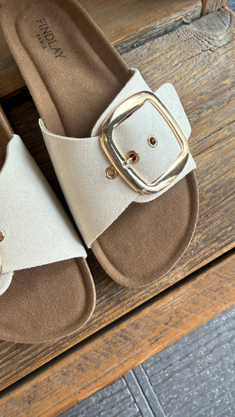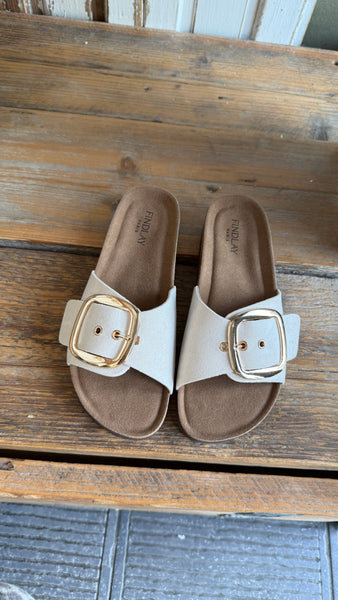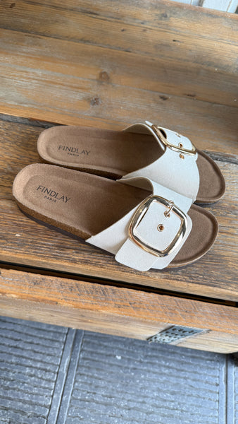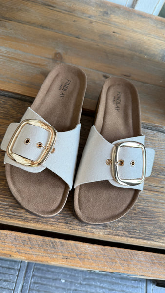Sandaal met grote gesp.