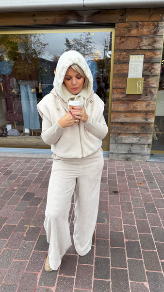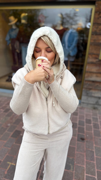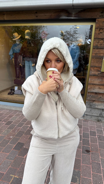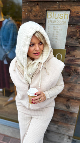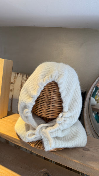 Gebreide capuchon in 59% polyester,21%nylon,11% polyester,8% wol,1% spandex.