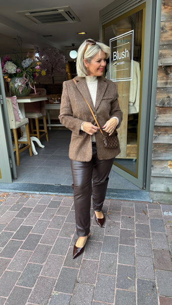Mooie, warme blazer in 85% polyester,10% wol,5%alpaca.