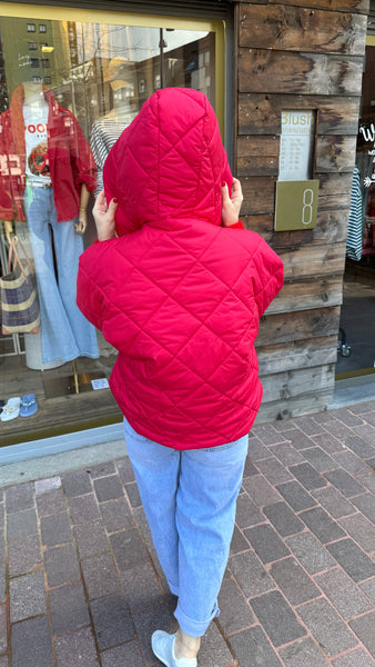 Bodywarmer met vaste capuchon.