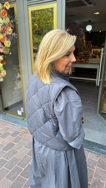 Bodywarmer in 70% polyethyleen,30% polyamide.