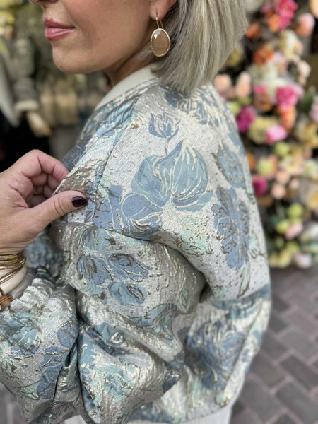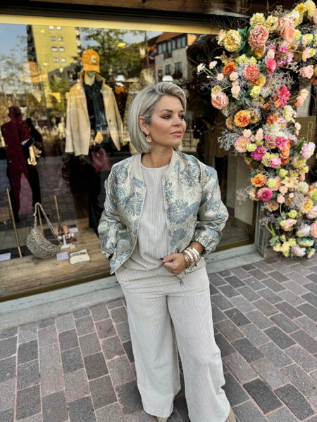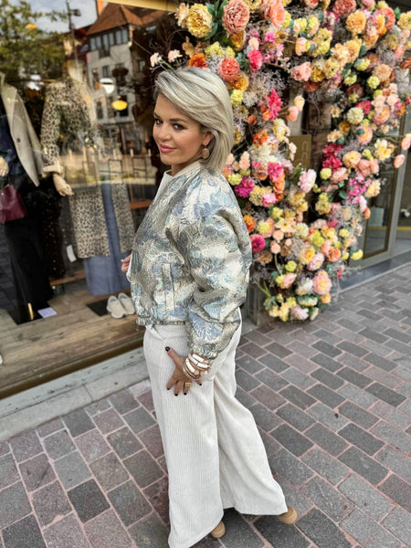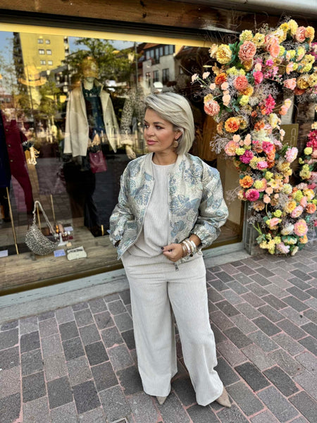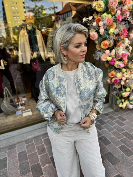Bomber in 50% polyester,35% nylon,15% metallic.