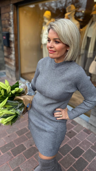 Knit dress/ silver/midi/NEVER FULLY DRESSED