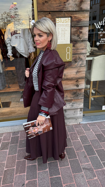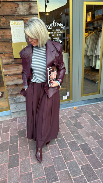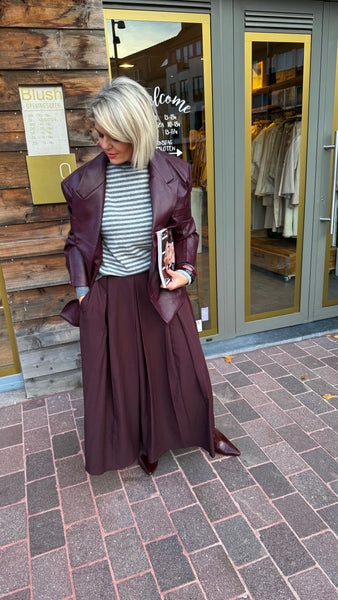 Oversized lederlook jas in 85% polyester,15% viscose.