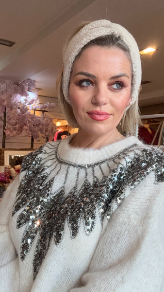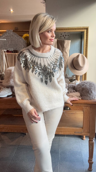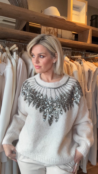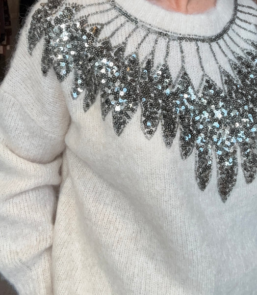 Trui in 70% polyamide,14% mohair,15% wol,1%spandex.